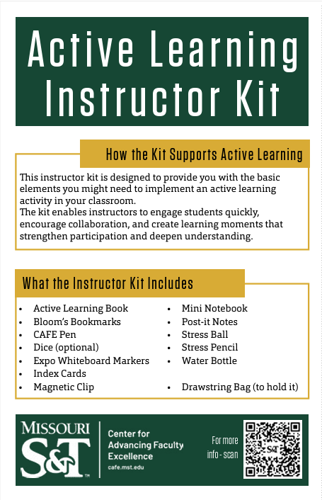 - Who doesn't need a good pen? The perfect accessory to jot down ideas of how to use Active Learning activities in your class. It is also a reminder of who you can talk to if you need help or want to bounce ideas off of someone.