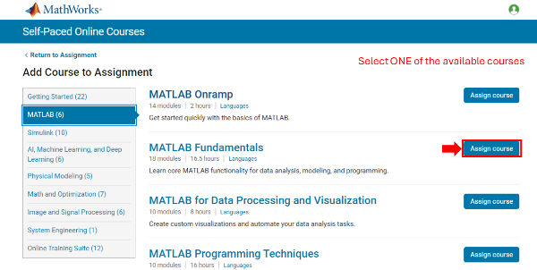 Self-Paced Online Courses - These are designed to provide a self-paced training environment for new users. Students and faculty both can benefit from these courses by learning new skills and techniques in MATLAB, Simulink, image & signal processing, and more. In addition, these can be added to a Canvas course (see FAQs below) so that students can receive course credit for completing these self-paced short courses.