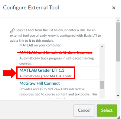 MATLAB Grader - The MATLAB Grader is a Canvas integration that allows professors to create Assignments that are graded automatically within the MATLAB environment and the results are passed back to the Canvas Gradebook. See the FAQ below on how to add a MATLAB Grader Assignment in Canvas.